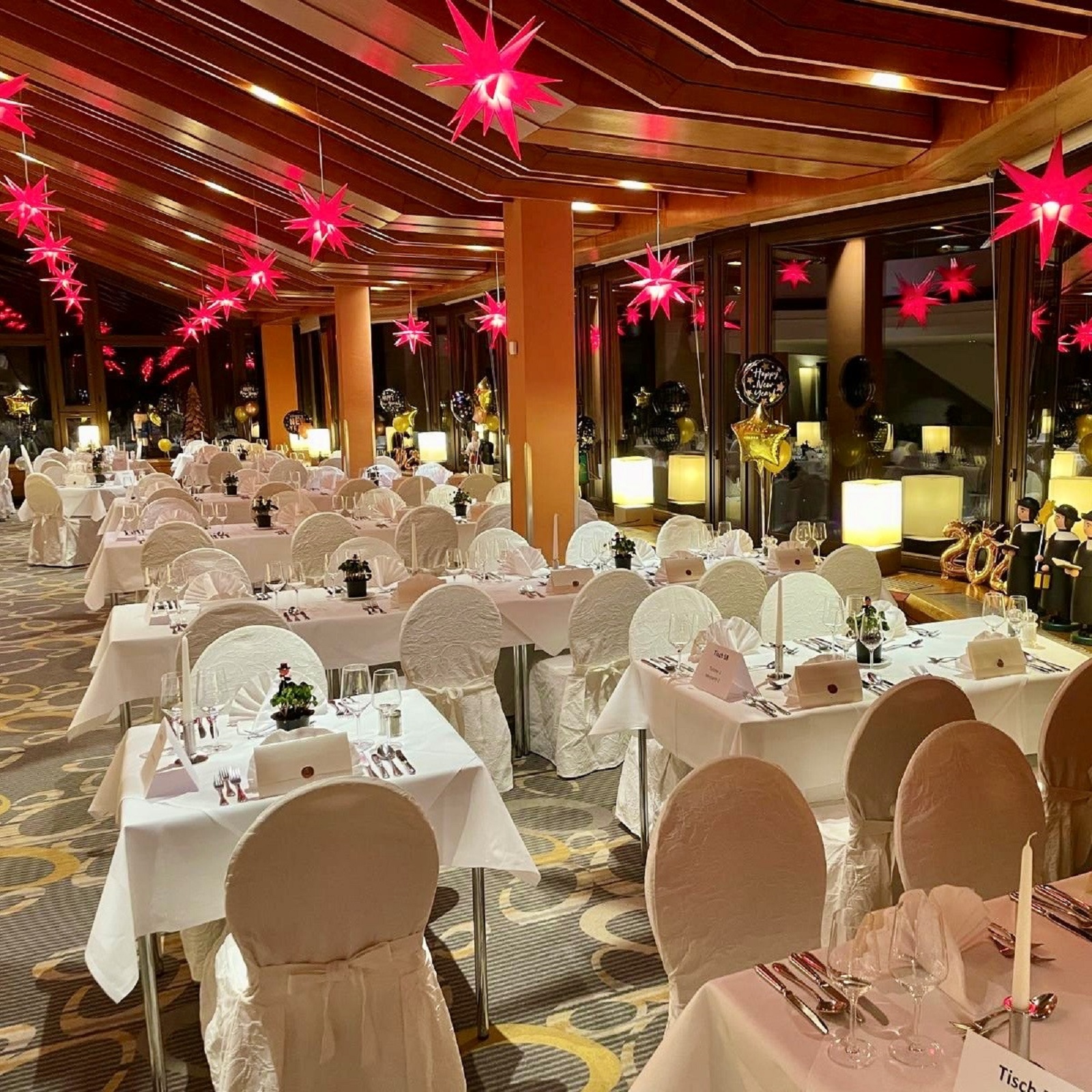 Vom Panoramarestaurant haben Sie einen grandiosen Blick und können um Mitternacht das Feuerwerk aus der ganzen Region bewundern. Wir freuen uns darauf, gemeinsam mit Ihnen ins neue Jahr zu starten.